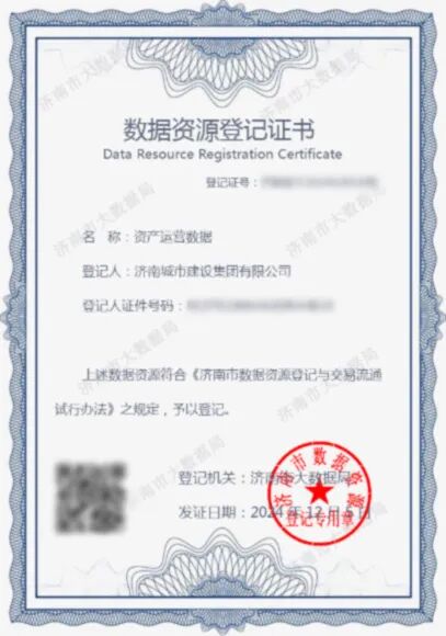 山东明源云协助济南城市建设集团成功完成“资产运营数据”的数据资产登记入表以及评估工作,获得济南市大数据局颁发的“数据资源登记证书”和山东省数据交易平台颁发的“数据资产登记证书”,并由国内权威评估机构完成价值评估,评估值为1050万元,成为省内首个完成“资产运营数据”数据资产登记和价值评估的企业。目前,已向金融机构提交融资授信相关材料。