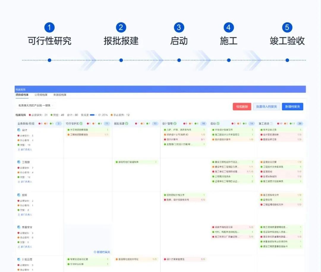 保利发展、鲁商发展是这样做的,借助数字化项目档案馆实现一键式管理和查询所有安全管理过程中的数据(包括安全教育工作记录、安全晨会影像资料、日常安全检查记录、应急演练记录、设备资料等等)。从而避免在借阅过程中导致部分数据缺失难查证。