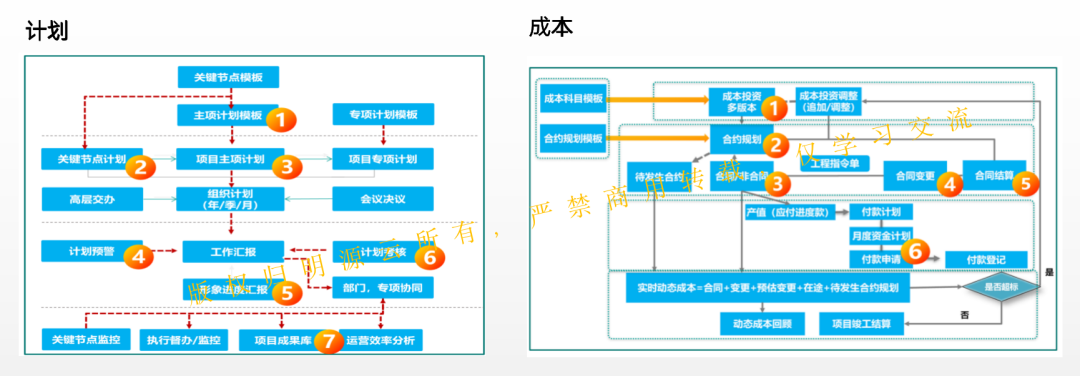 比如在工程管理中,作为领导关注的是计划管理、投资成本管理、合同管理、质量安全管理,在管理制度的指导之下,会形成一个个的管理的动作和管理行为,从而就会形成各种流程。
