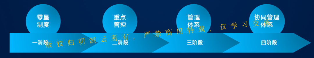 第一个阶段,叫“零星制度就是遇到一个问题发一个制度,比如项目渗漏,那么就出一个防渗漏的作业指引。