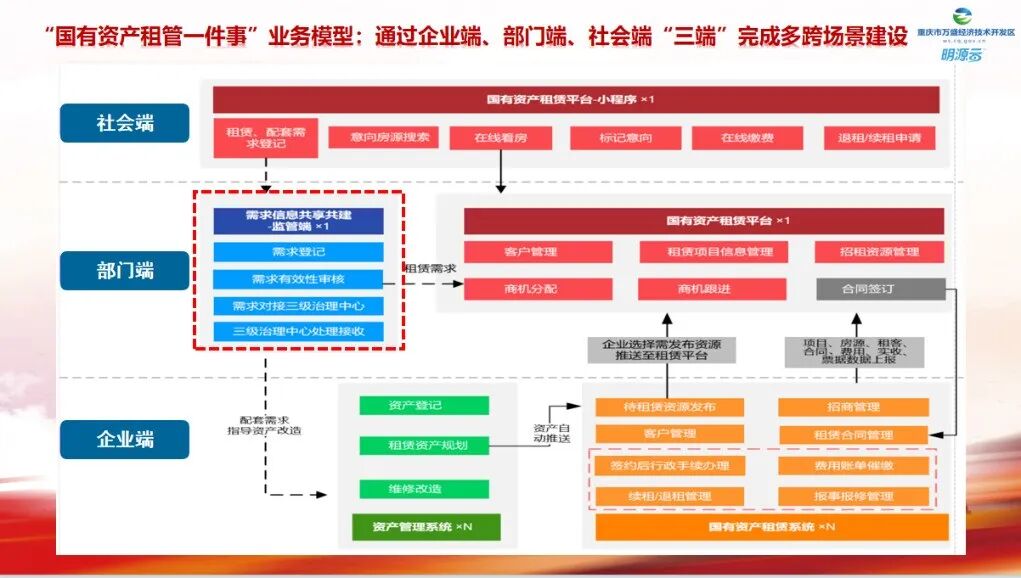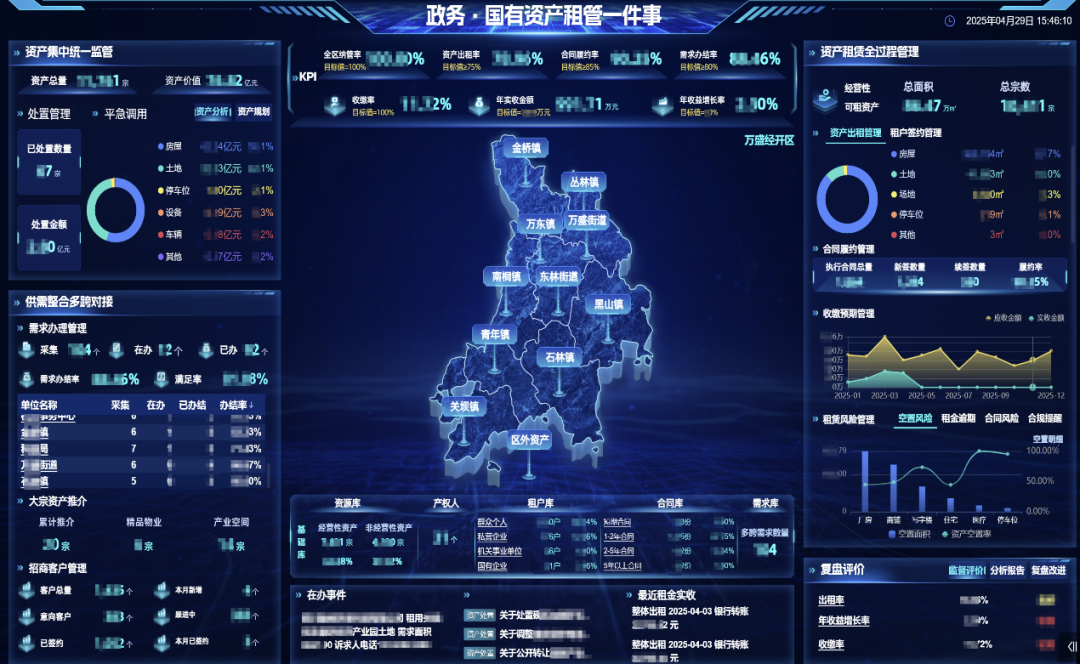 20235月,明源云助力重庆万盛经开区建设完成“国资国企大数据监管及市场化转型发展服务平台”(以下简称为“国资国企大数据平台”)。同年10月,万盛经开区国资中心以国资国企大数据平台为基础,围绕资产盘活,结合数字重庆要求寻找小切口,谋划“国有资产租管一件事”特色应用。